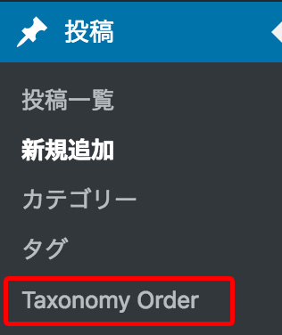 管理画面の左サイドバーにある「投稿」の中の「Taxonomy Order」を押して見ると、きちんとカテゴリーは並び替えされているのに、