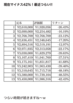 【第13週】仮想通貨の積立投資(Zaif)、成績は「マイナス146万円」でした。つらい!