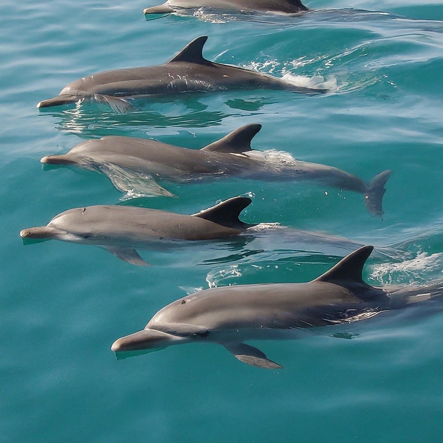 入力したプロンプト:Photo of large groups of dolphins swimming gracefully in the water.(水中を優雅に泳ぐイルカの大群の写真)