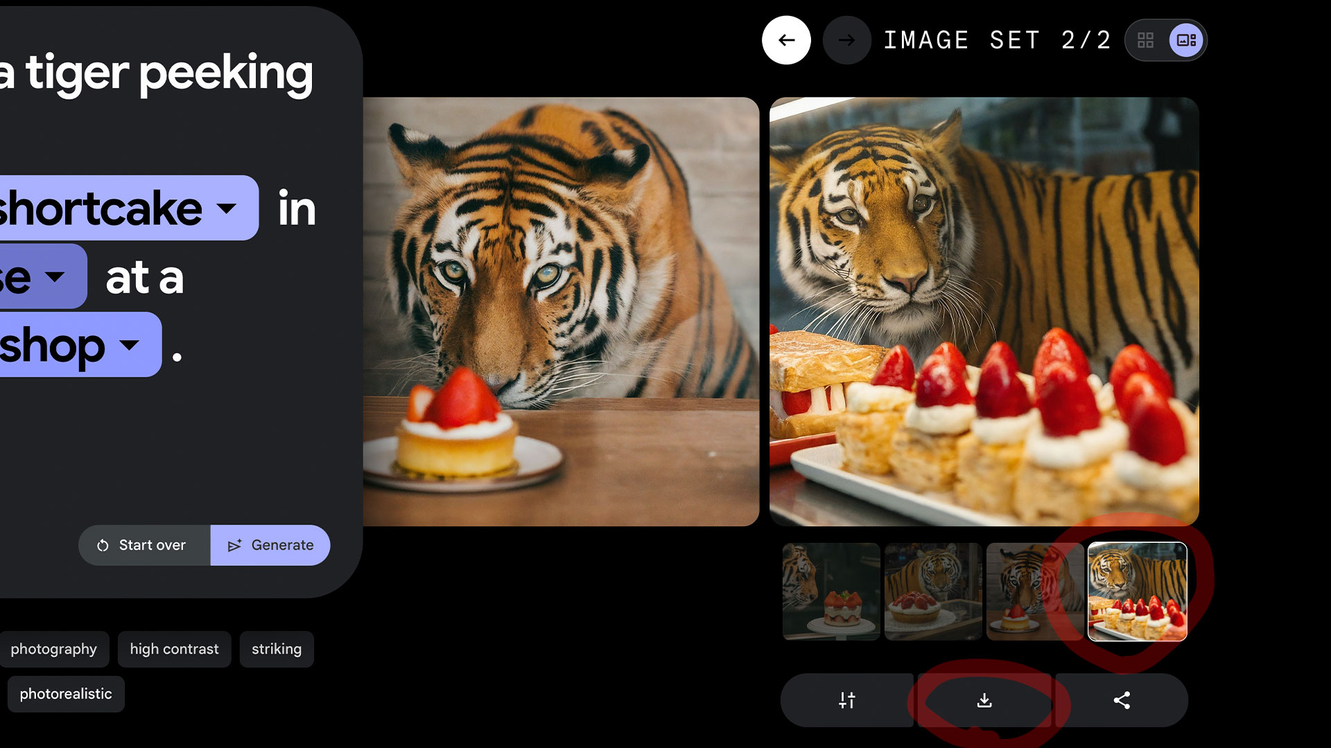 生成されて好みの画像が出力されたら、写真を選択してダウンロードします。