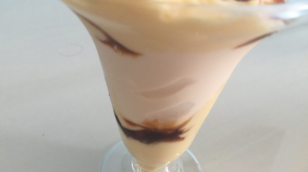 大きく分けると、なめらかプリンパフェは3層構造です。