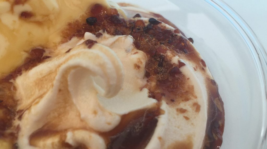 上から普通のカラメルソースがかけてあって、それとは別のフレーク状の細かいカラメルが載っていますが、これがセンスが良い!